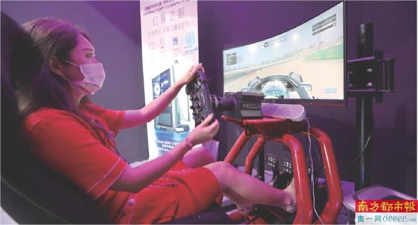 深圳新一代产业园展区内,这样的互动感在持续进行。园区企业七彩虹在现场带来了定制游戏水冷主机,搭载最新的英伟达RTX4090显卡,实现了一张显卡在8K超高清分辨率下,畅玩3A大作游戏的实况,吸引了不少游戏发烧友现场体验。南都记者注意到,机箱内这款显卡是七彩虹iGame RTX4090火神,其在显卡顶部放置了一块可自定义内容的显示屏,玩家可以通过软件控制它的显示内容,搭配外置套件,可以实现屏幕的延长分离显示。