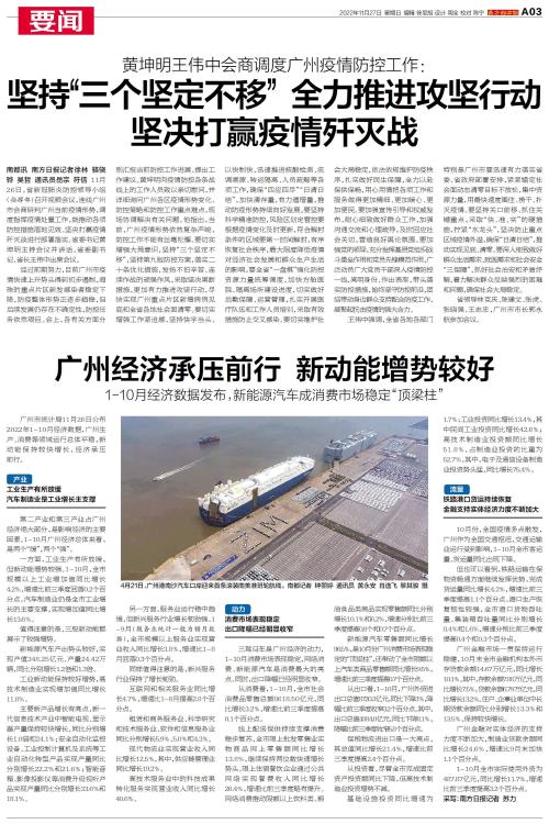 广州市统计局11月26日公布2022年1-10月经济数据,广州生产、消费等领域运行总体平稳,新动能保持较快增长,经济承压前行。 产业 工业生产有所放缓 汽车制造业是工业增长主支撑 第二产业