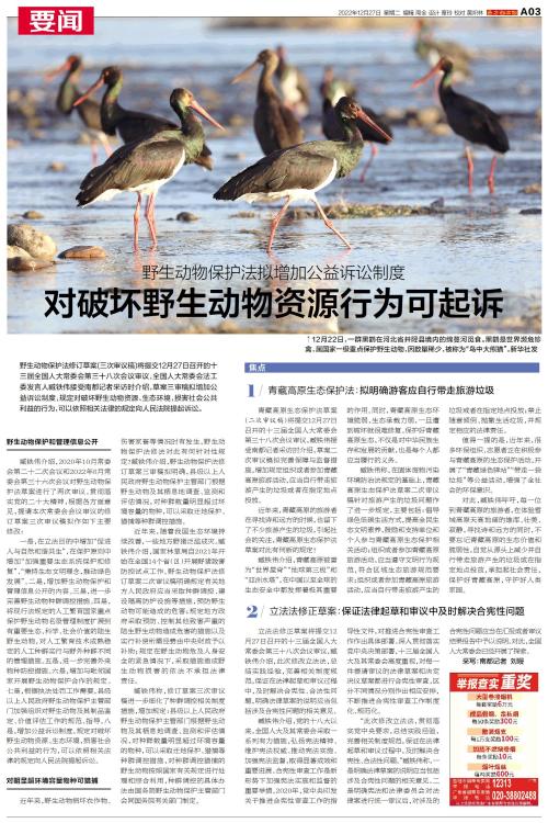 野生动物保护法修订草案(三次审议稿)将提交12月27日召开的十三届全国人大常委会第三十八次会议审议。