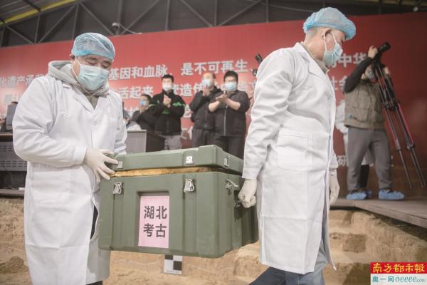 日前,记者从湖北省文化和旅游厅获悉,经过学堂梁子遗址考古团队数月奋战,“郧县人”3号头骨化石目前被顺利提取,进入后续研究环节。