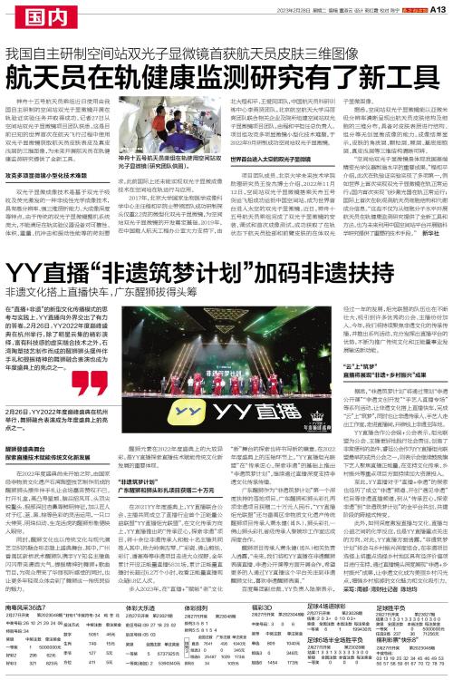 神舟十五号航天员乘组近日使用由我国自主研制的空间站双光子显微镜开展在轨验证实验任务并取得成功。
