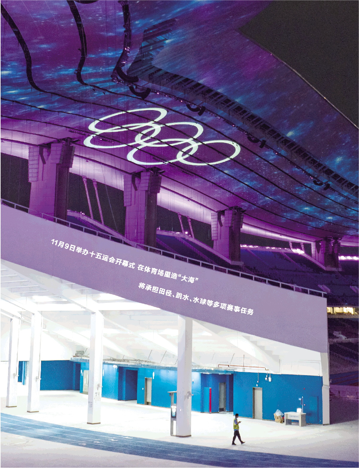 十五运主场馆整体试亮灯 天花板投影模块上线