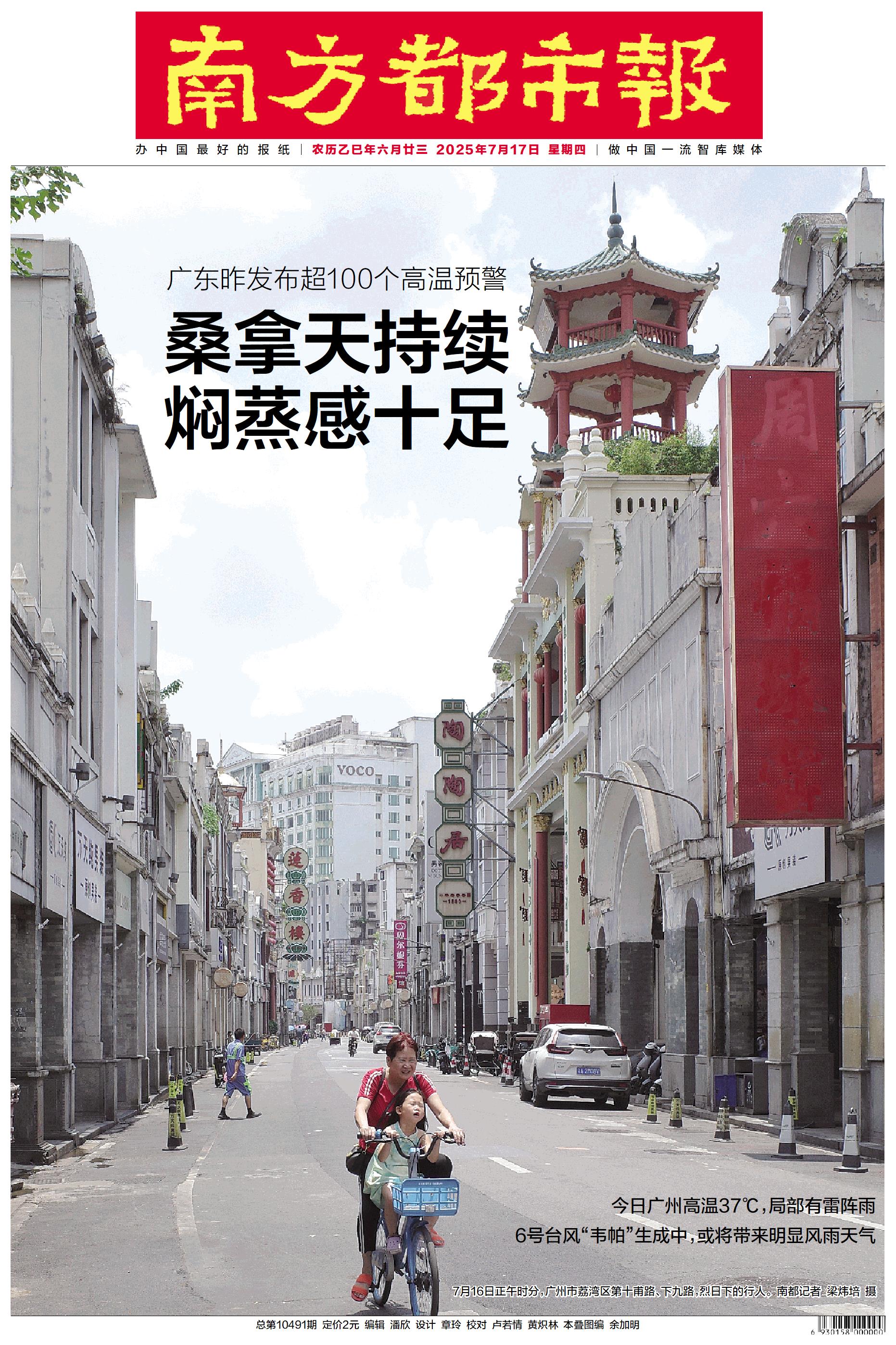 7月16日正午时分,广州市荔湾区第十甫路、下九路,烈日下的行人。 南都记者 梁炜培 摄