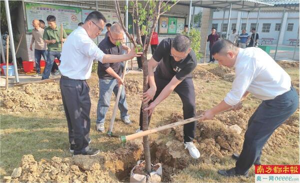 今年上半年以来,热水镇内总共新种植福建山樱491棵、桂花106棵、樟树300棵,其中,陈斌锋所在工作队争取到组团单位帮扶资金30万元。在位于热水镇九连村的九连学校里,39棵山樱落地校内草坪,建起一片“小庭院”。