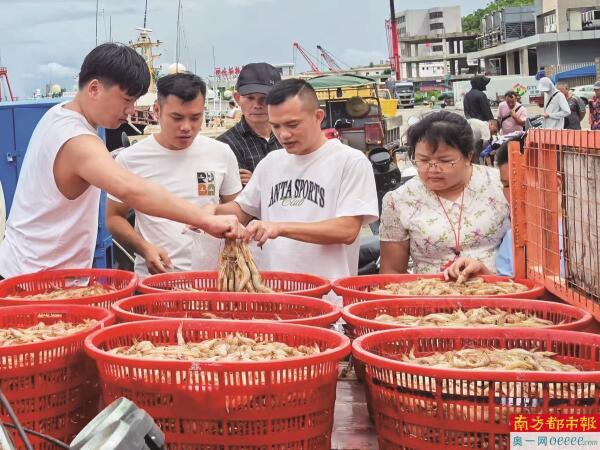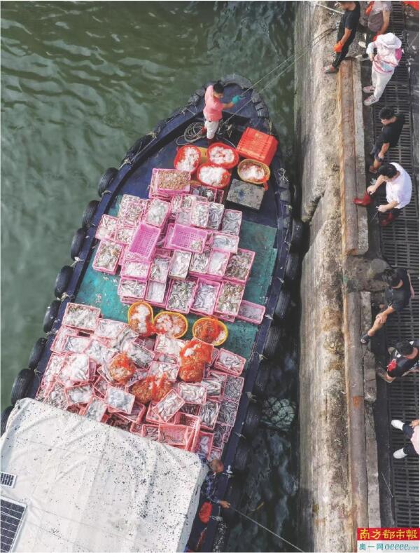 在阳江海陵岛闸坡国家中心渔港,场面同样火热,“海鲜代购”们举着手机直播穿梭于人群,“皮皮虾一斤45!”的喊声不绝于耳,手脚麻利地将一箱箱海鲜冰鲜打包。更令人瞩目的是,一条来自南鹏岛南面海域的巨型鞍带石斑鱼以100万元高价成交,现场弥漫的不仅是咸鲜的海味,更是开渔的无限喜悦与期盼。