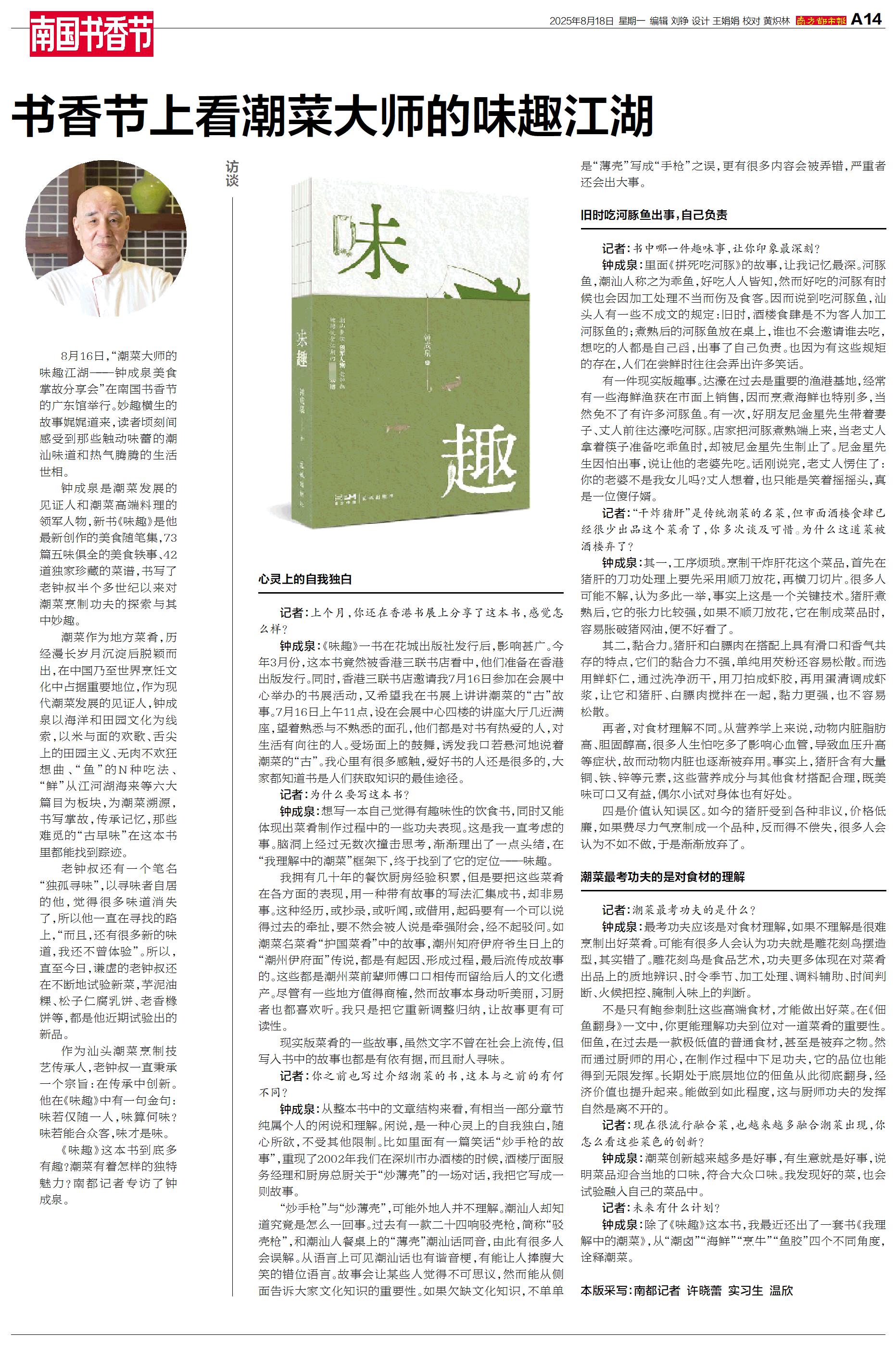 《味趣》这本书到底多有趣?潮菜有着怎样的独特魅力?南都记者专访了钟成泉。