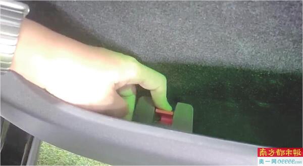 一名售后人员表示,一旦机械把手都失效,还有一种逃生方法:放倒后排座椅,爬到后备厢,在靠近尾厢门位置找到显示开启后备厢图标,通过拉手打开后厢盖逃生。