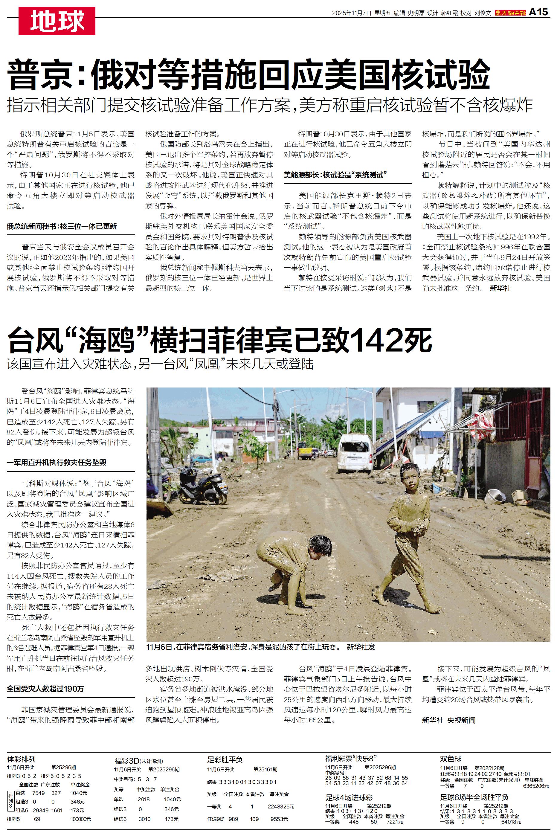 俄罗斯总统普京11月5日表示,美国总统特朗普有关重启核试验的言论是一个“严肃问题”,俄罗斯将不得不采取对等措施。
