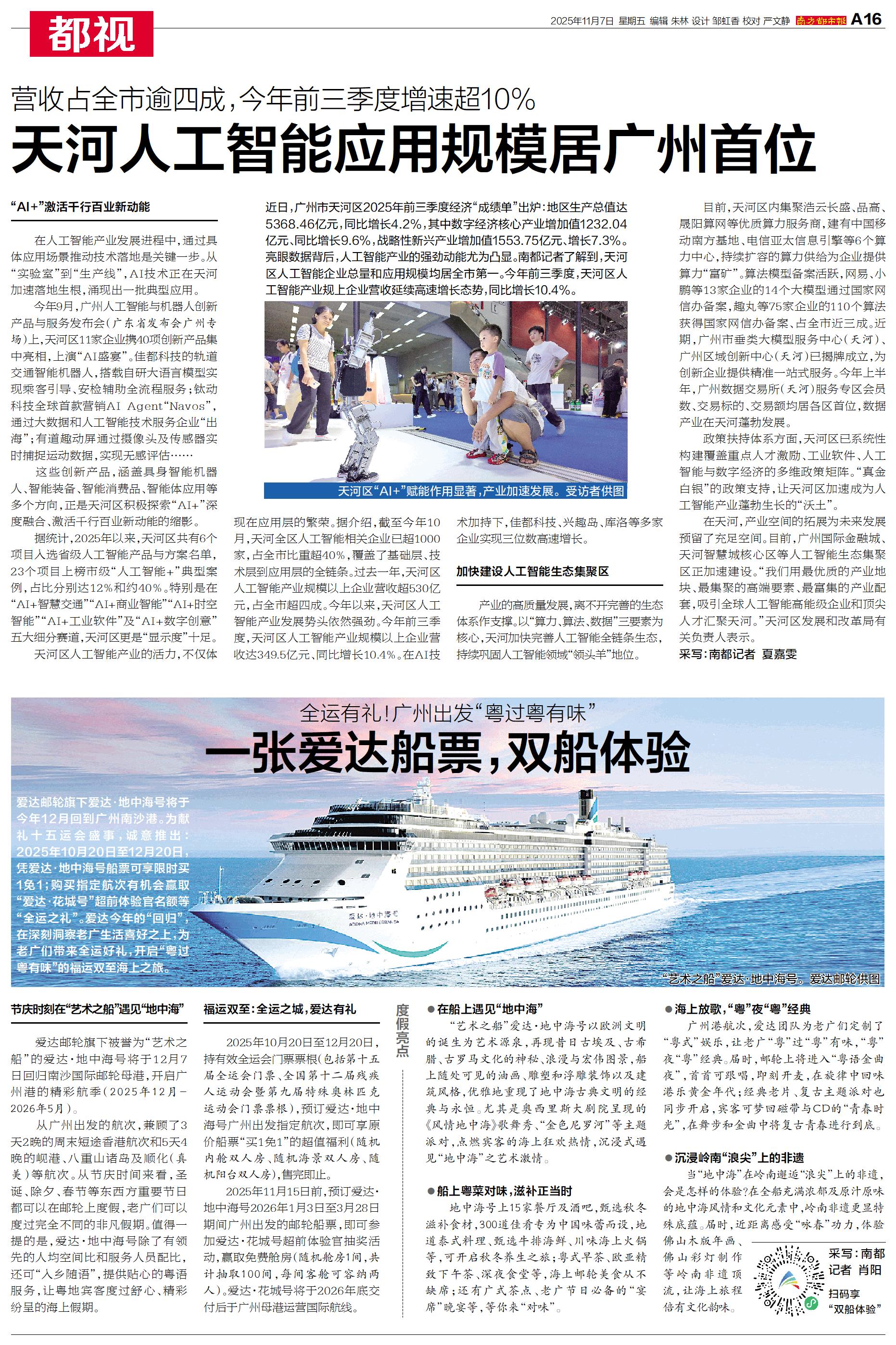 爱达邮轮旗下爱达·地中海号将于今年12月回到广州南沙港。为献礼十五运会盛事,诚意推出:2025年10月20日至12月20日,凭爱达·地中海号船票可享限时买1免1;购买指定航次有机会赢取“爱达·花城号”超前体验官名额等“全运之礼”。爱达今年的“回归”,在深刻洞察老广生活喜好之上,为老广们带来全运好礼,开启“粤过粤有味”的福运双至海上之旅。