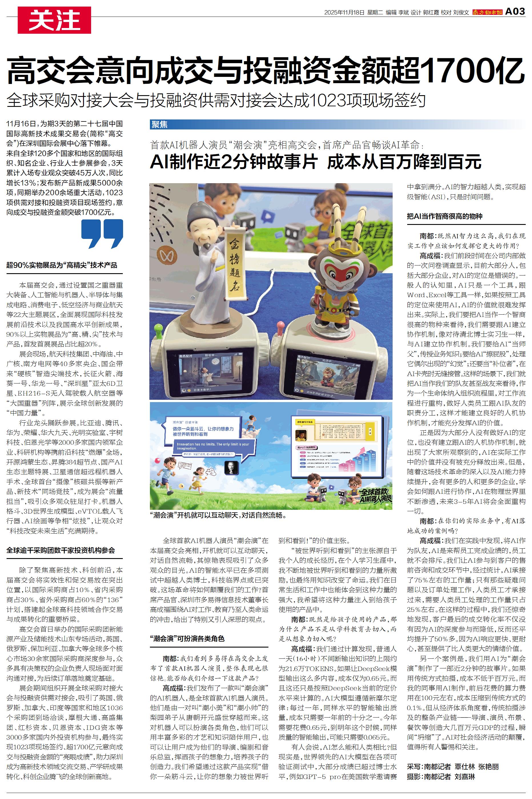 11月16日,为期3天的第二十七届中国国际高新技术成果交易会(简称“高交会”)在深圳国际会展中心落下帷幕。