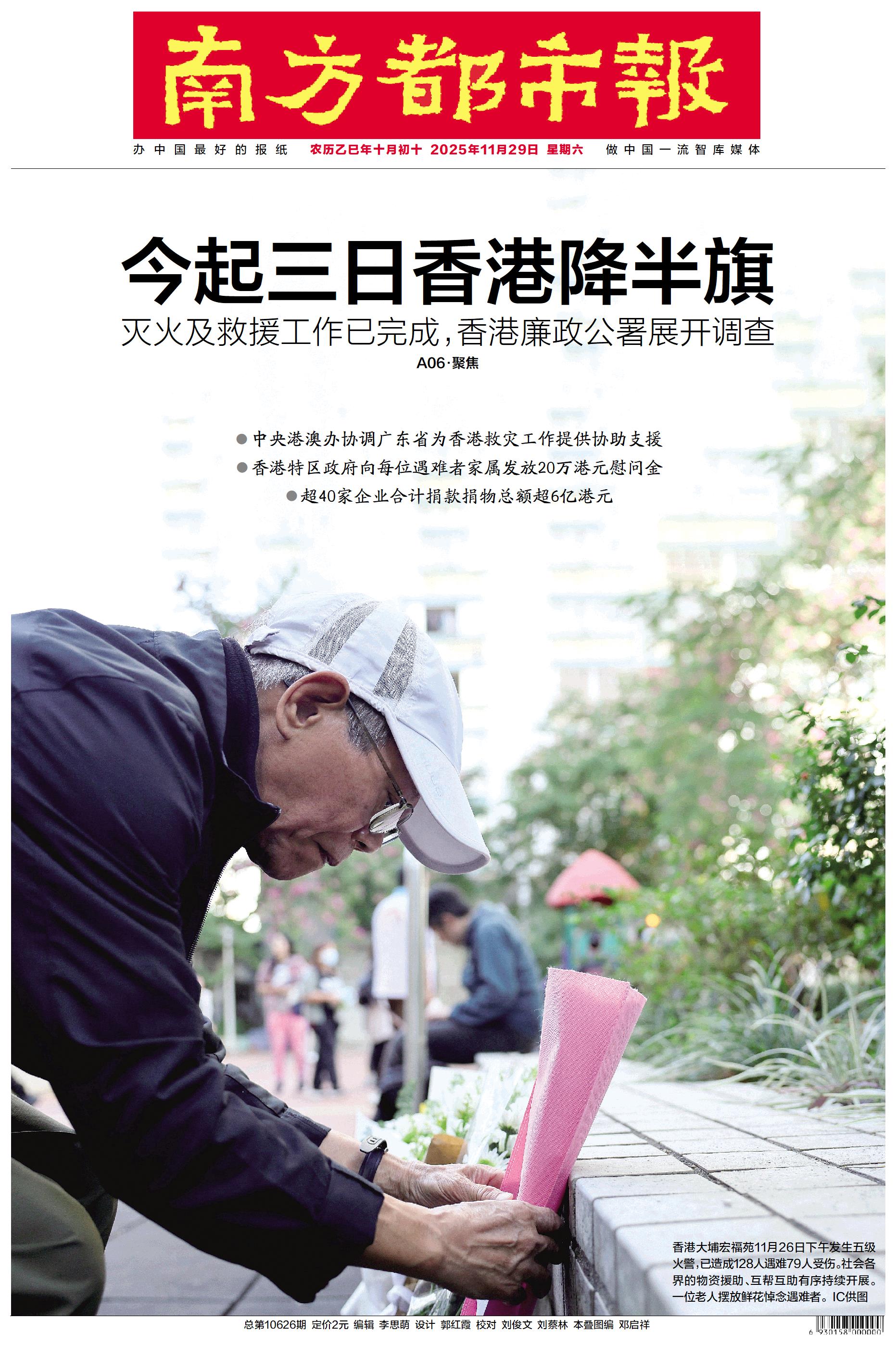 今起三日香港降半旗