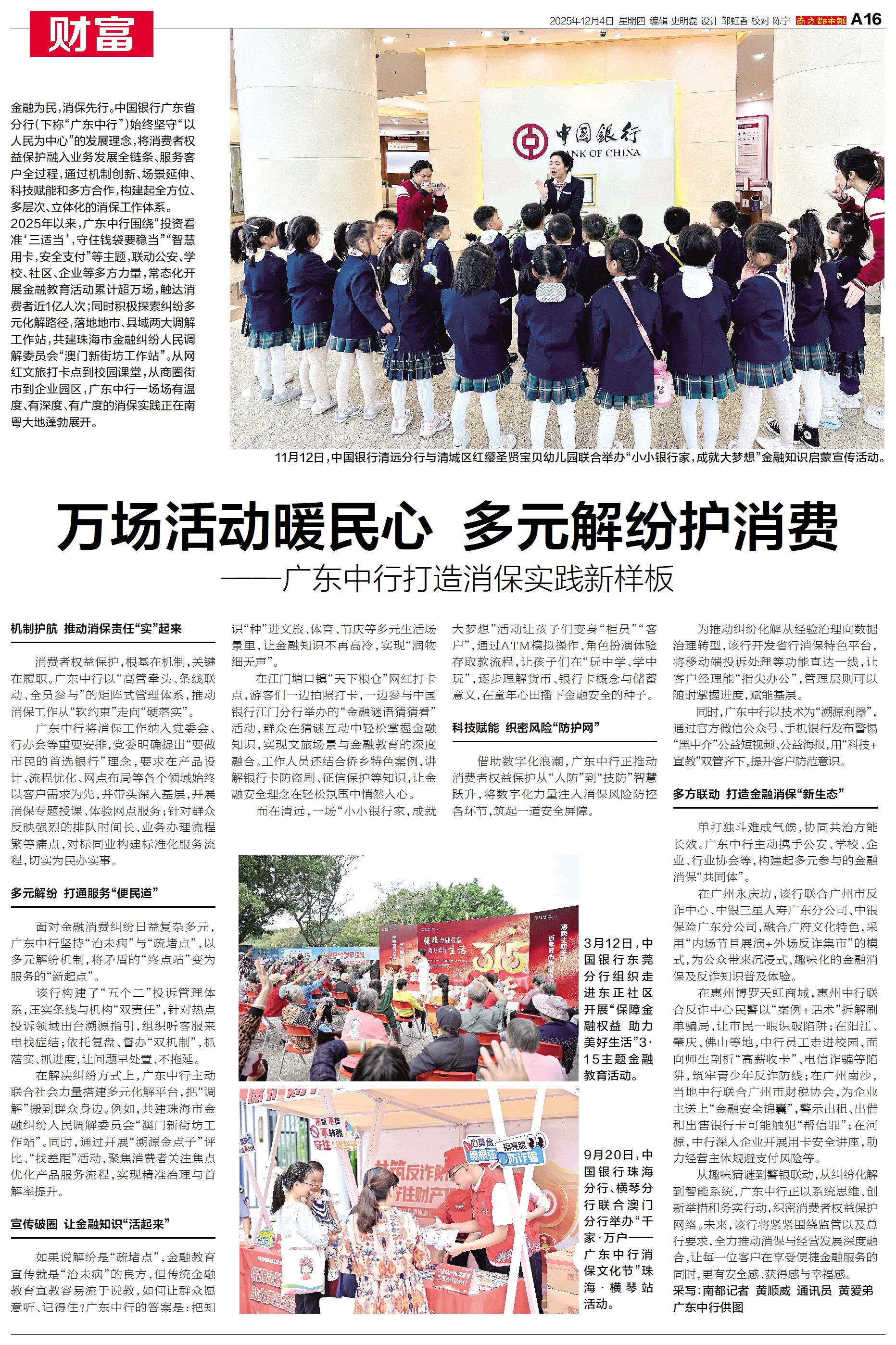 从网红文旅打卡点到校园课堂,从商圈街市到企业园区,广东中行一场场有温度、有深度、有广度的消保实践正在南粤大地蓬勃展开。