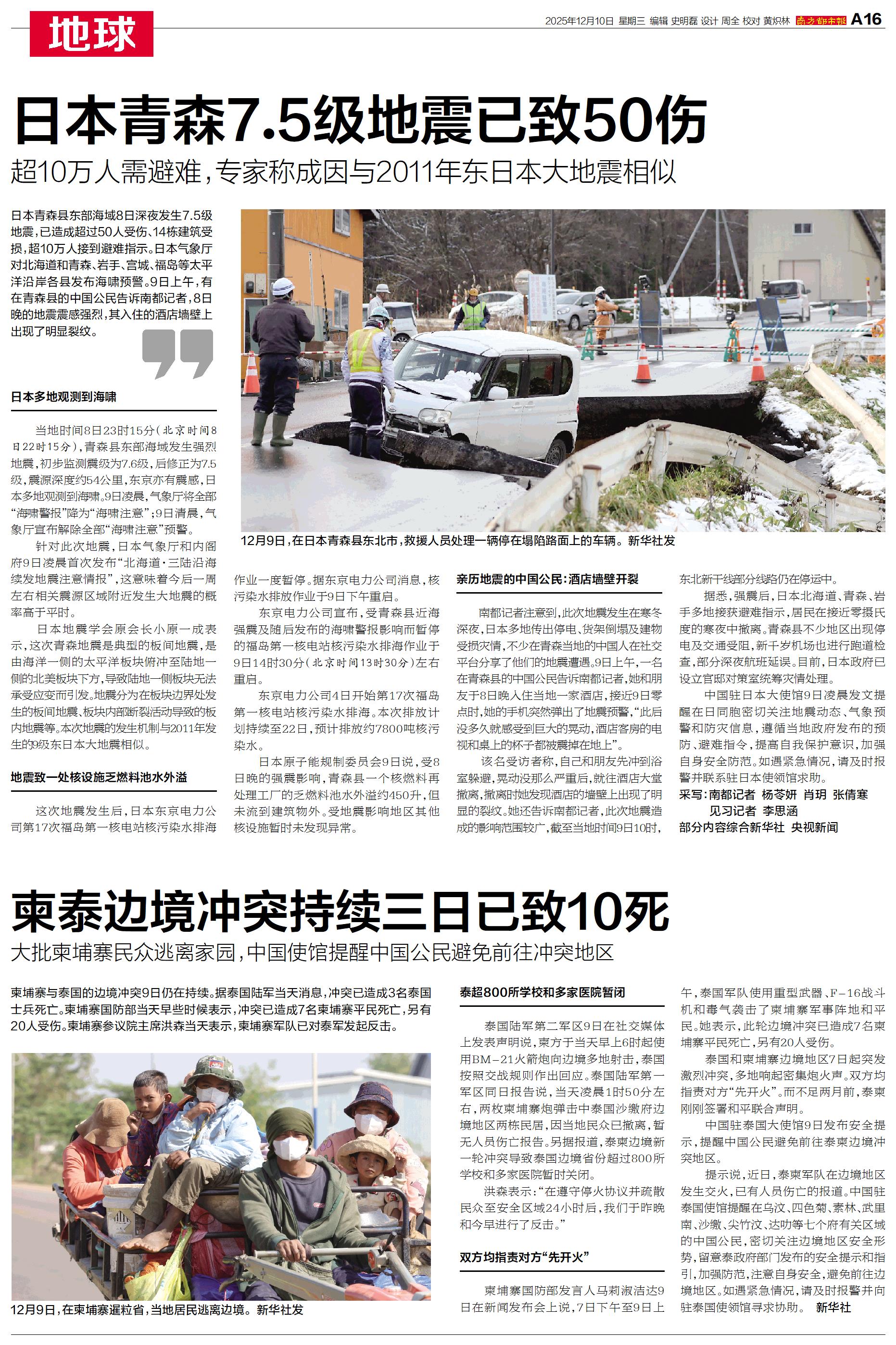 日本青森县东部海域8日深夜发生7.5级地震,已造成超过50人受伤、14栋建筑受损,超10万人接到避难指示。