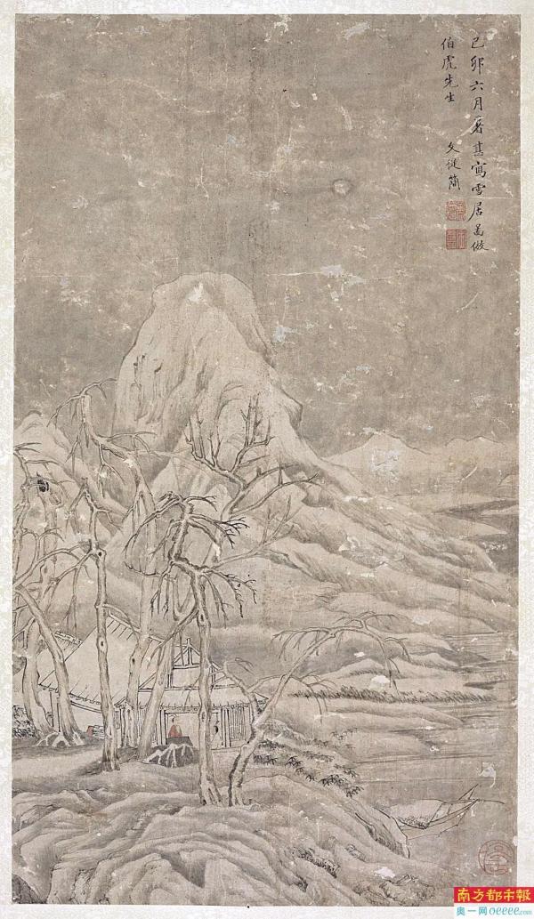 文从简《仿唐寅雪居图》,1615年作,68cm×38.5cm,广州艺术博物院藏。