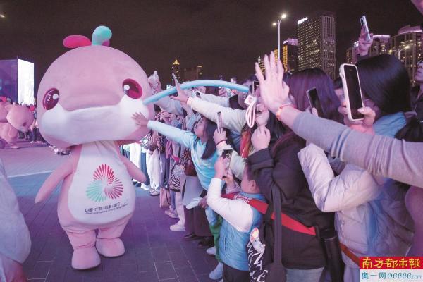11月20日,广州国际灯光节,吉祥物与观众热情互动。