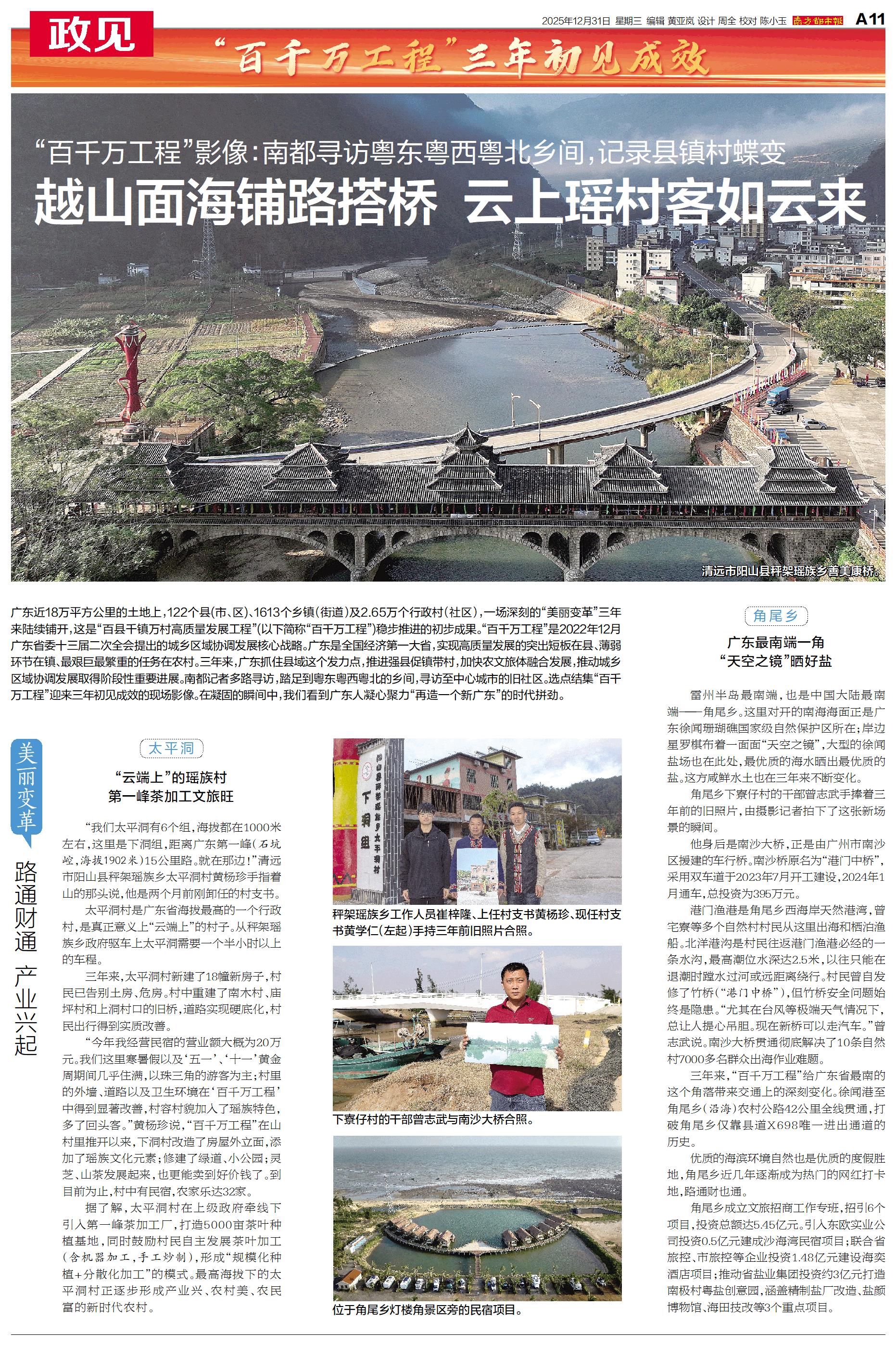 南都记者多路寻访,踏足到粤东粤西粤北的乡间,寻访至中心城市的旧社区。选点结集“百千万工程”迎来三年初见成效的现场影像。在凝固的瞬间中,我们看到广东人凝心聚力“再造一个新广东”的时代拼劲。