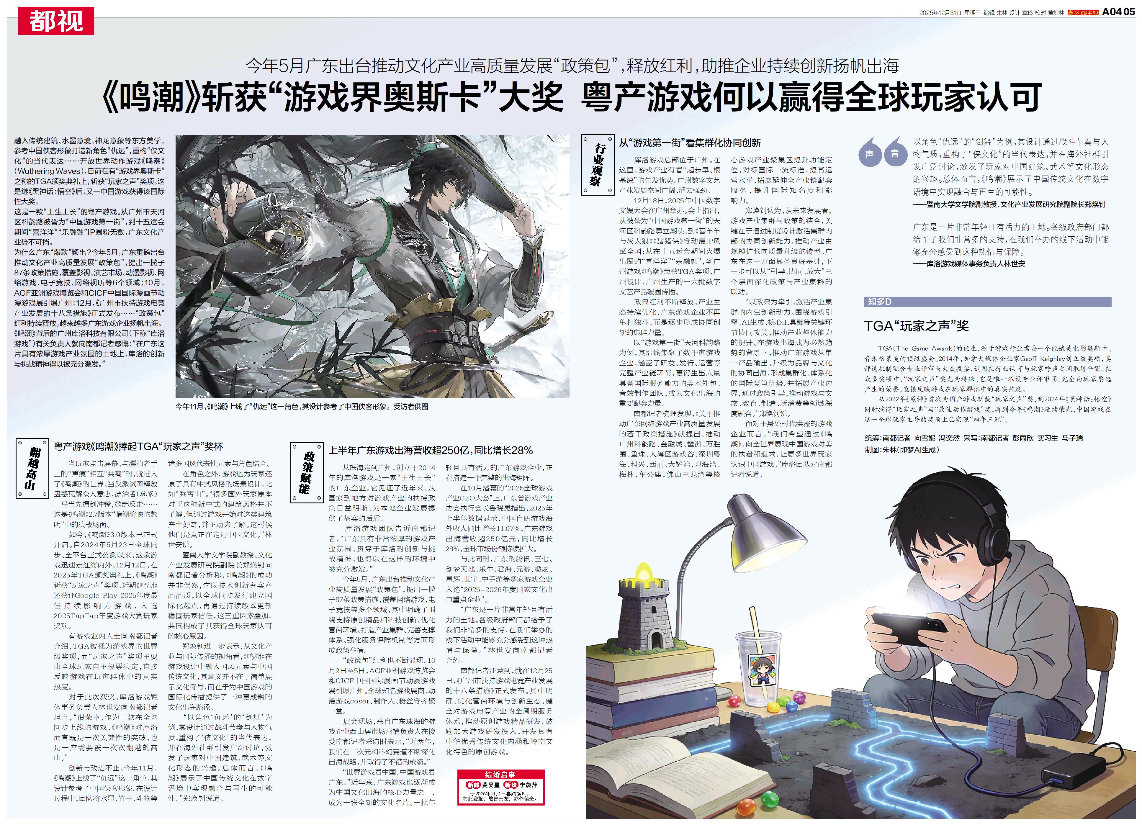 《鸣潮》斩获“游戏界奥斯卡”大奖 粤产游戏何以赢得全球玩家认可