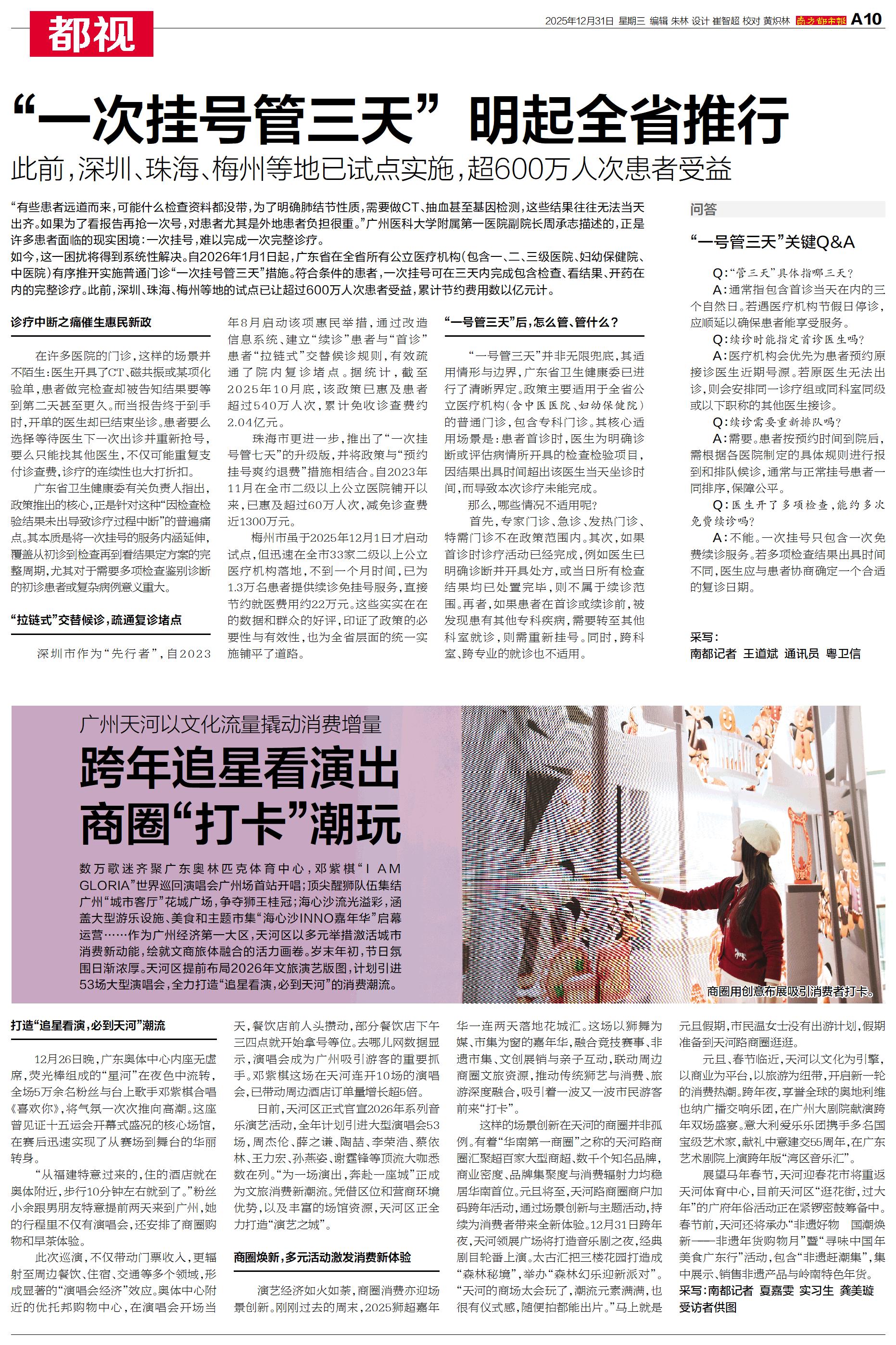 自2026年1月1日起,广东省在全省所有公立医疗机构(包含一、二、三级医院、妇幼保健院、中医院)有序推开实施普通门诊“一次挂号管三天”措施。