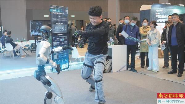 2025广东省人工智能与机器人技能大赛上,人形机器人的表演吸引观众们关注。 南方日报记者 张令 摄