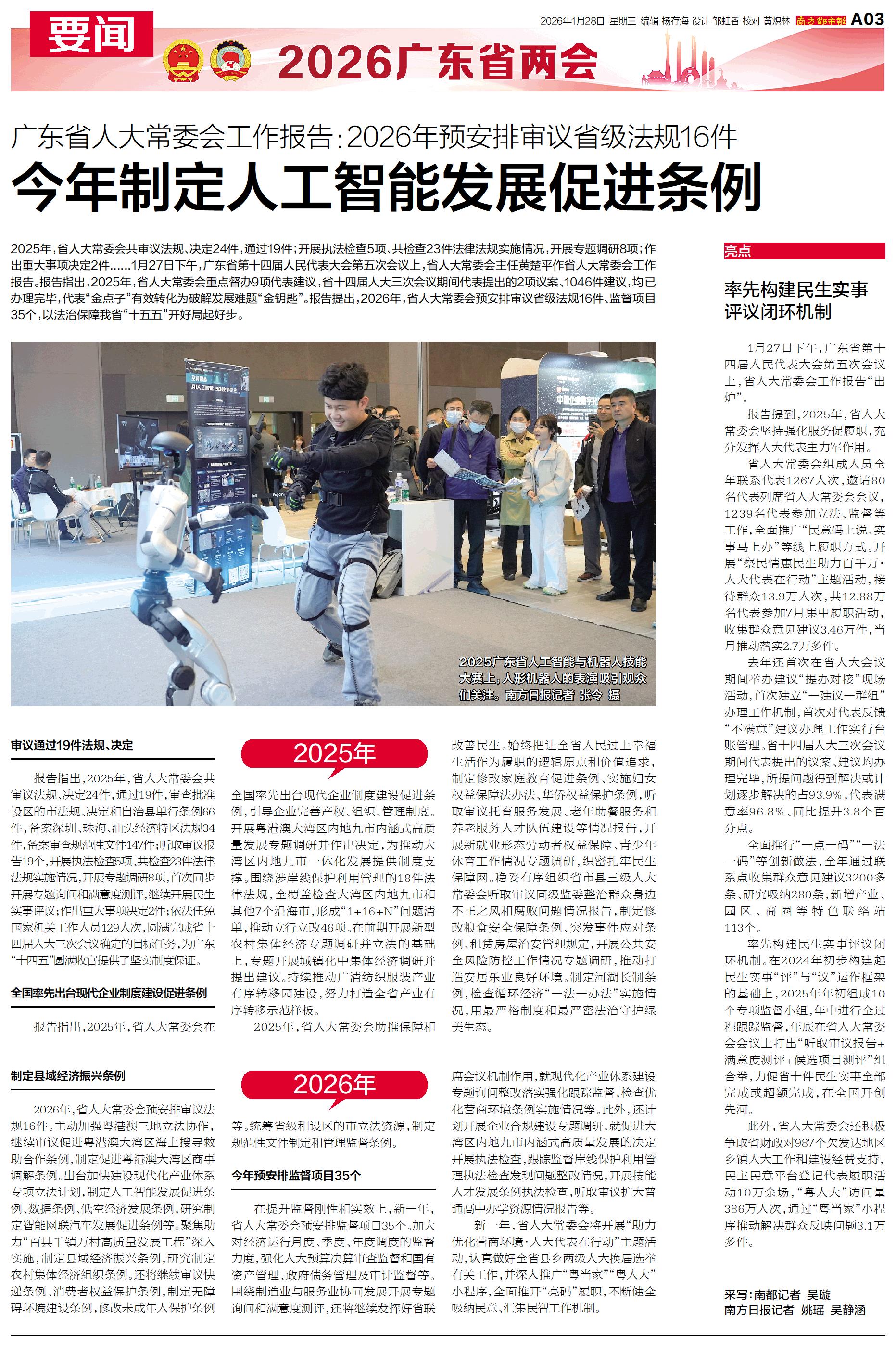 报告提出,2026年,省人大常委会预安排审议省级法规16件、监督项目35个,以法治保障我省“十五五”开好局起好步。