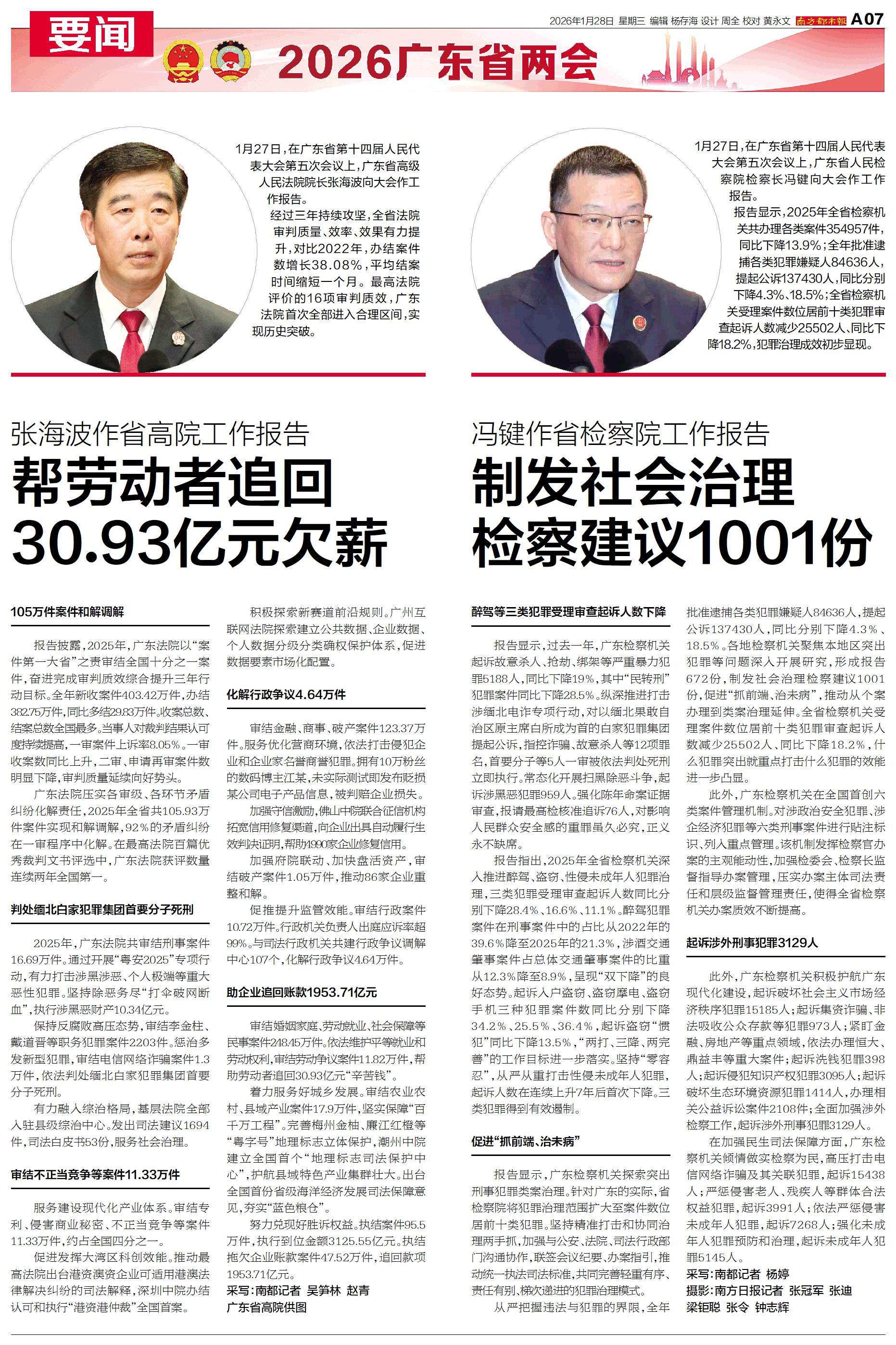 1月27日,在广东省第十四届人民代表大会第五次会议上,广东省人民检察院检察长冯键向大会作工作报告。