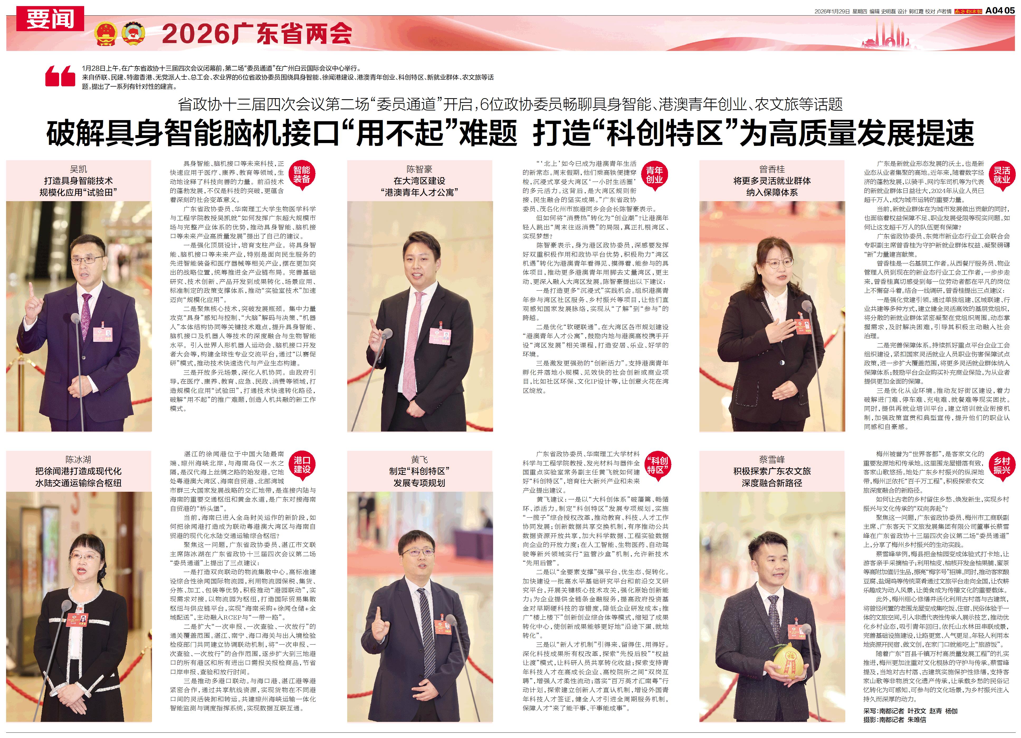 6位省政协委员围绕具身智能、徐闻港建设、港澳青年创业、科创特区、新就业群体、农文旅等话题,提出了一系列有针对性的建言。