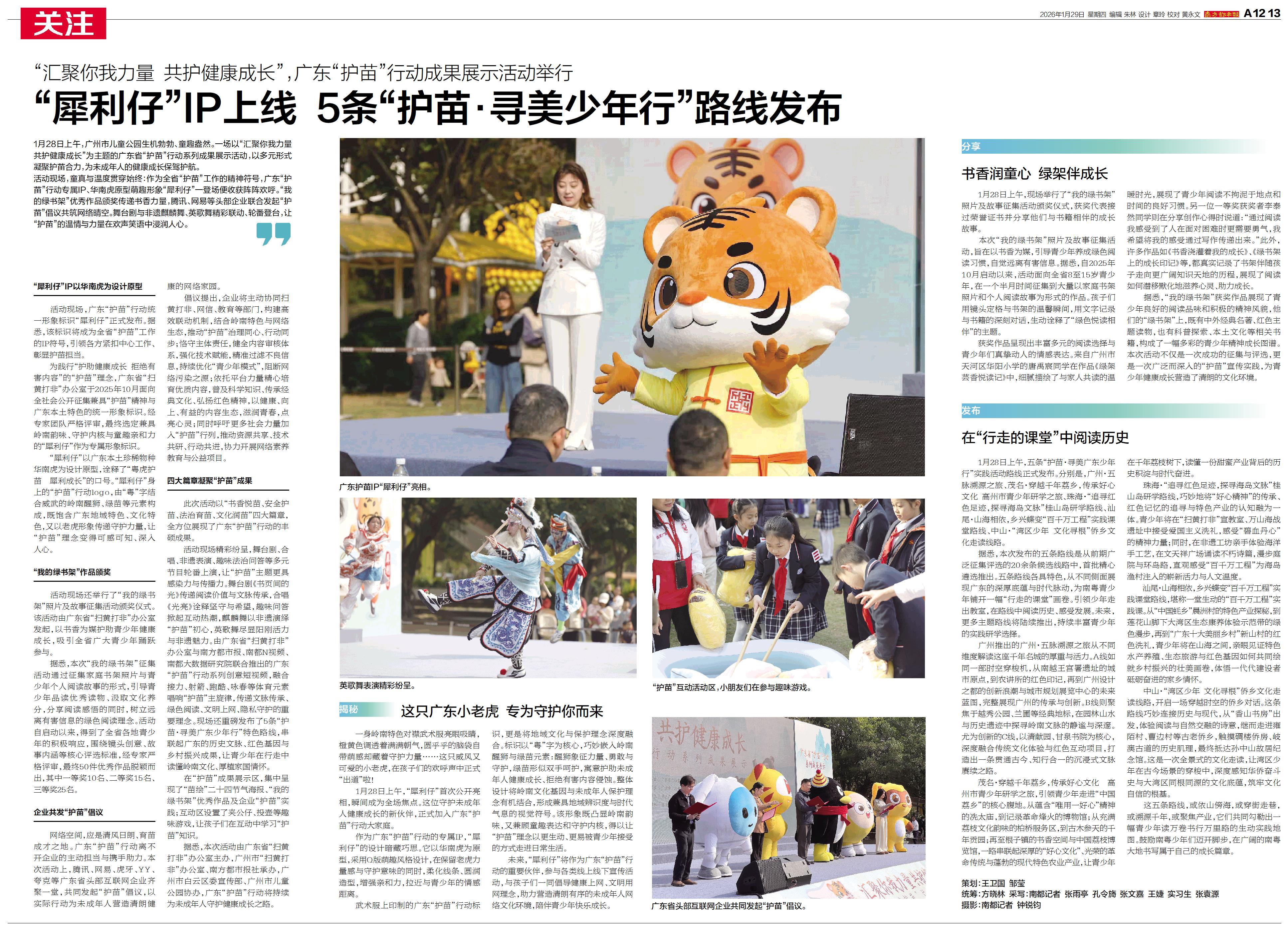 1月28日上午,广州市儿童公园生机勃勃、童趣盎然。一场以“汇聚你我力量 共护健康成长”为主题的广东省“护苗”行动系列成果展示活动,以多元形式凝聚护苗合力,为未成年人的健康成长保驾护航。