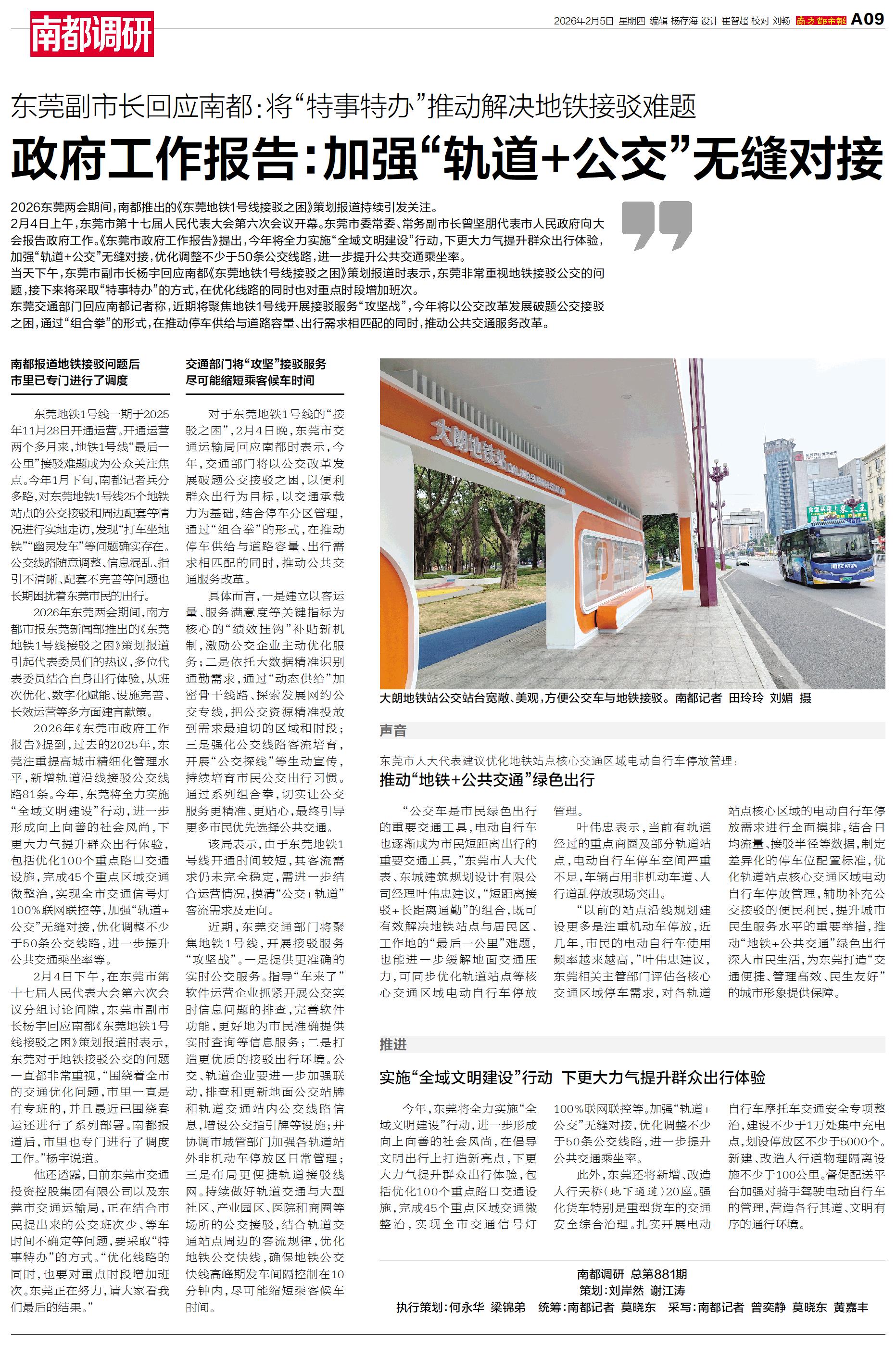 2026东莞两会期间,南都推出的《东莞地铁1号线接驳之困》策划报道持续引发关注。