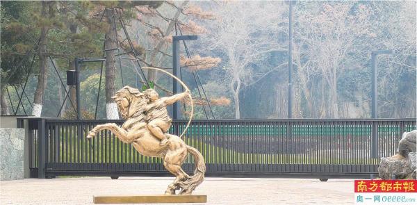 《马上开弓》摆放在杭州国家版本馆庭院中。