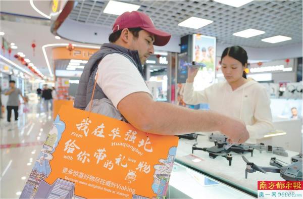 近日,南都记者走访华强北周边的商场发现,现场随处可见外籍客商,低空经济设备、消费级无人机、智能硬件等产品尤为抢手,成为跨境消费的热门选择。有外国游客直呼,“这里的设备稳定性简直令人难以置信。”