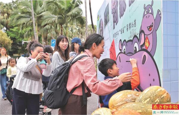 2月15日,广州动物园河马妈妈“清清”获赠千斤南瓜“粤式月子餐”,与游客同贺添丁之喜。日前,“清清”成功诞下其第16个宝宝。 南都记者 黎湛均 摄