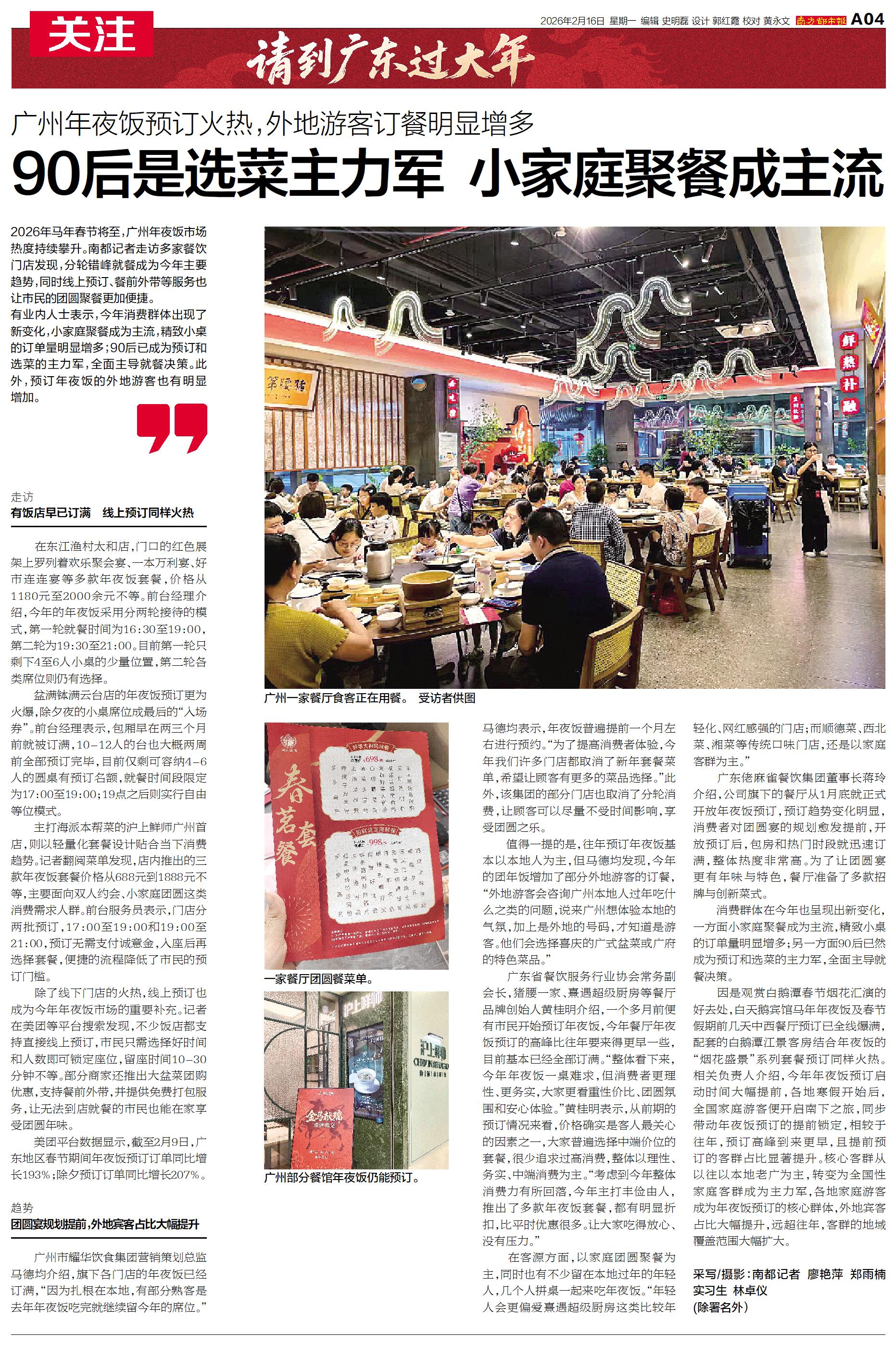 2026年马年春节将至,广州年夜饭市场热度持续攀升。