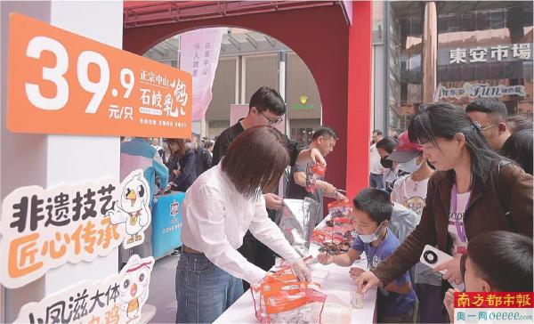 “美味中山”展区前,北京市民排队品尝、购买石岐乳鸽。