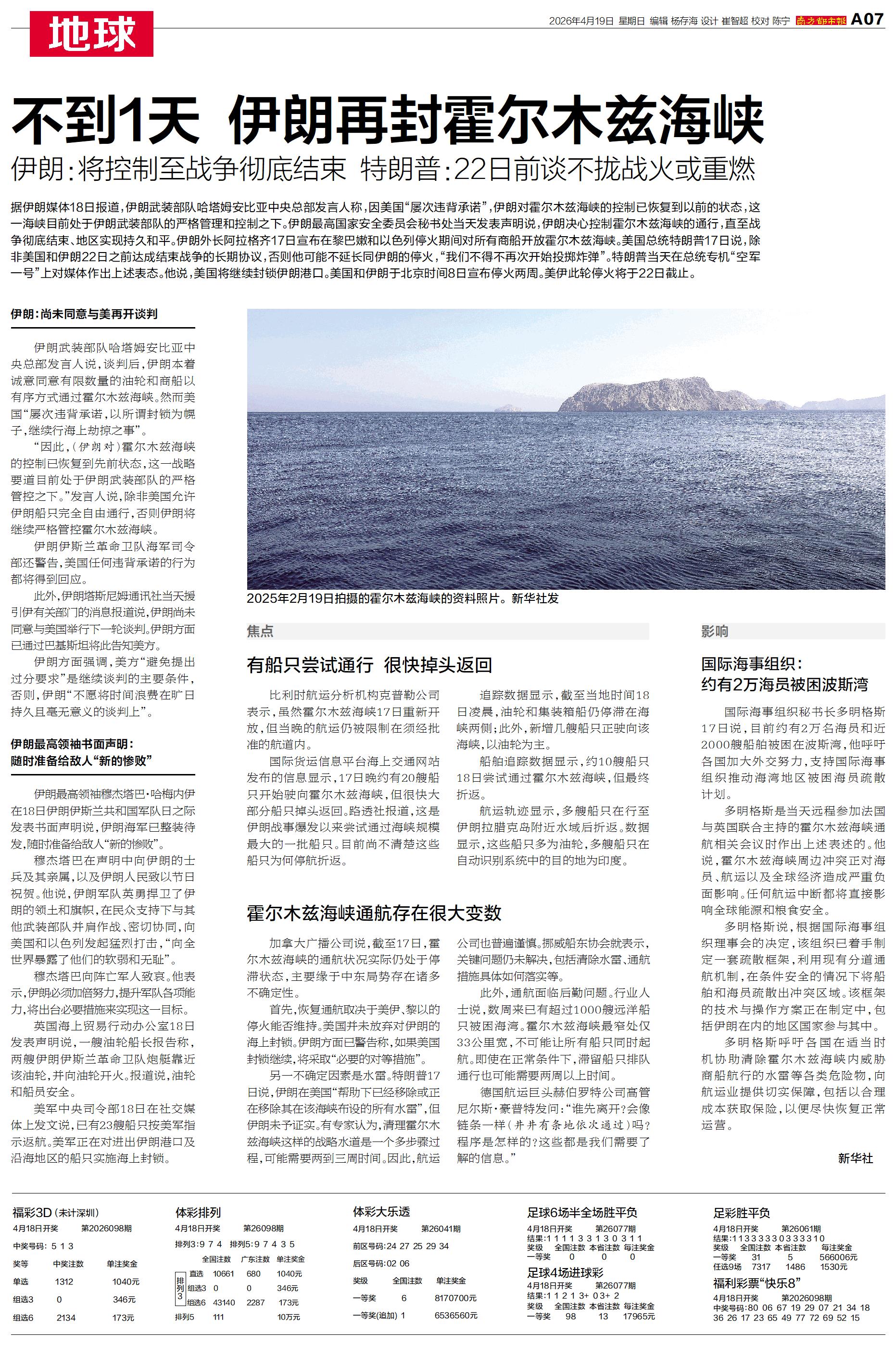 另一不确定因素是水雷。特朗普17日说,伊朗在美国“帮助下已经移除或正在移除其在该海峡布设的所有水雷”,但伊朗未予证实。有专家认为,清理霍尔木兹海峡这样的战略水道是一个多步骤过程,可能需要两到三周时间。因此,航运公司也普遍谨慎。挪威船东协会就表示,关键问题仍未解决,包括清除水雷、通航措施具体如何落实等。