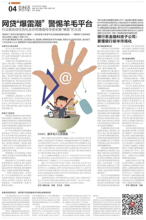 “‘雷潮’可能还会延续一小段时间。”对于近期的网贷行业,桔子理财总经理弓晨表示,恐慌尚未全面退去。e路同心总经理王大勇表示,现在行业面临的是一个风险释放期,“雷潮”大概率还会持续。