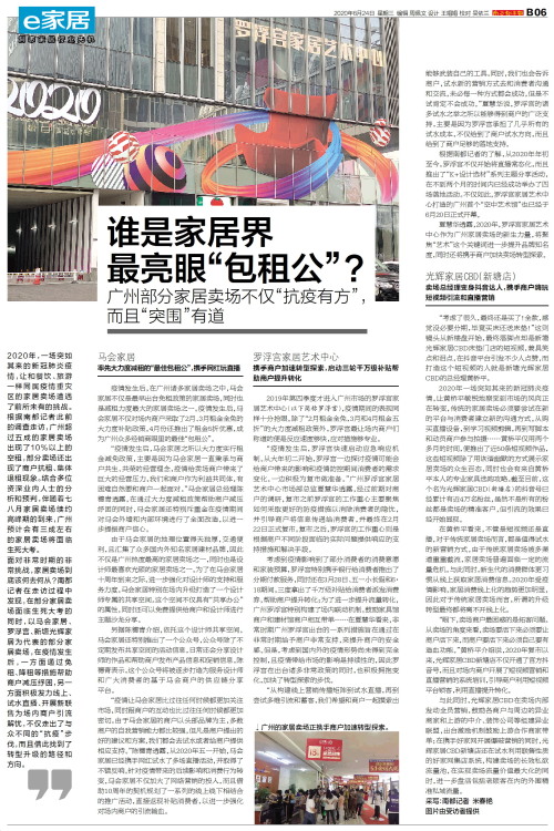 2020年,一场突如其来的新冠肺炎疫情,让和餐饮、旅游一样同属疫情重灾区的家居卖场遭遇了前所未有的挑战。根据南都记者此前的调查走访,广州超过五成的家居卖场出现了10%以上的空租,部分卖场还出现了商户抗