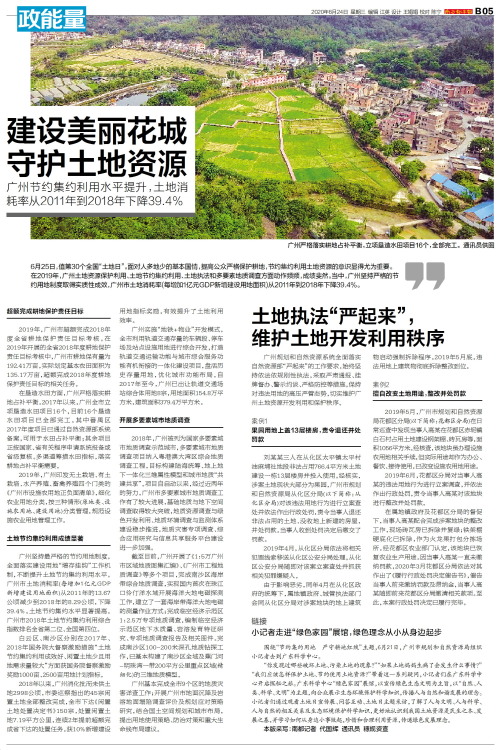 6月25日,值第30个全国“土地日”。面对人多地少的基本国情,提高公众严格保护耕地,节约集约利用土地资源的意识显得尤为重要。在2019年,广州土地资源保护利用、土地节约集约利用、土地执法和多要素地质调