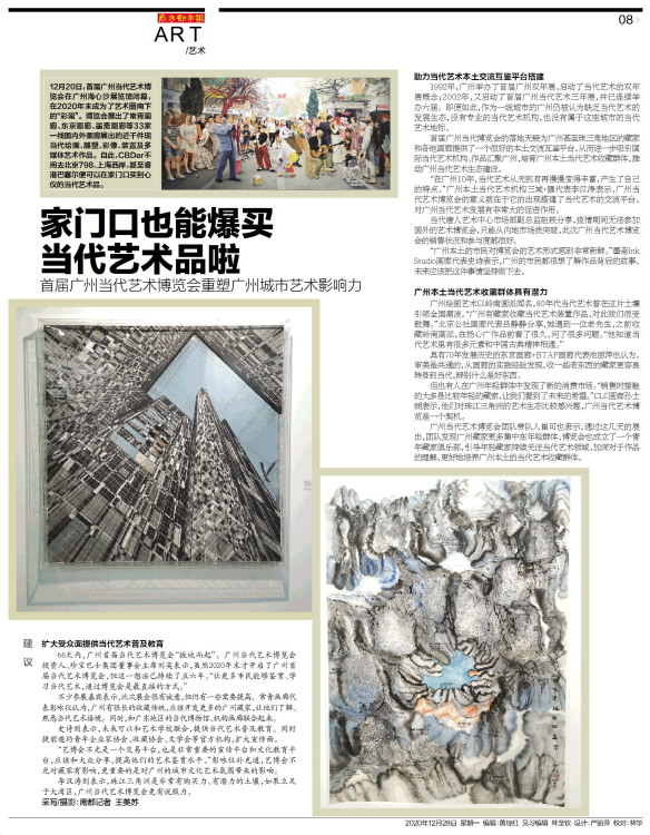 12月20日,首届广州当代艺术博览会在广州海心沙展览馆闭幕,在2020年末成为了艺术圈南下的“彩蛋”。博览会展出了常青画廊、东京画廊、墨斋画廊等33家一线国内外画廊展出的近千件现当代绘画、雕塑、影像、
