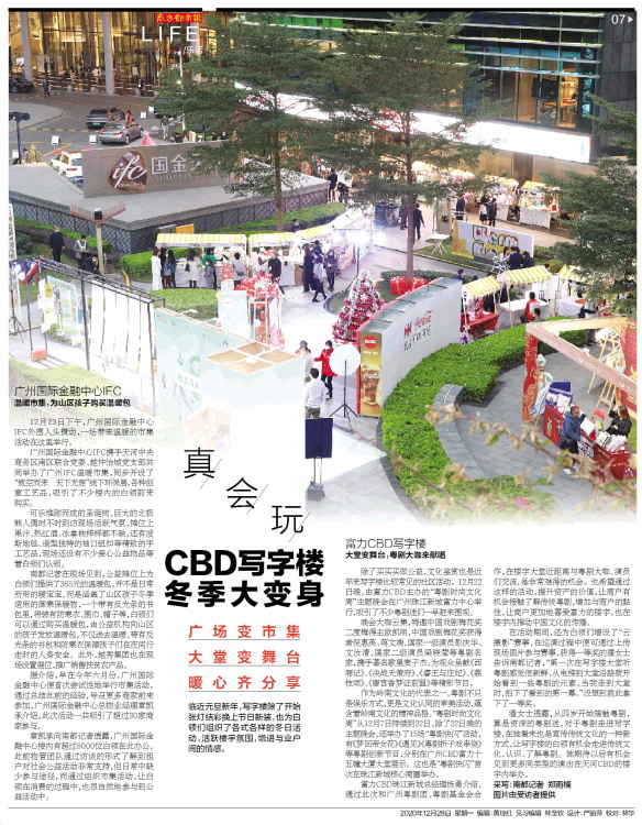 临近元旦新年,写字楼除了开始张灯结彩换上节日新装,也为白领们组织了各式各样的冬日活动,活跃楼宇氛围,增进与业户间的情感。 广州国际金融中心IFC 温暖市集,为山区孩子购买温暖包12月23日下午,广州