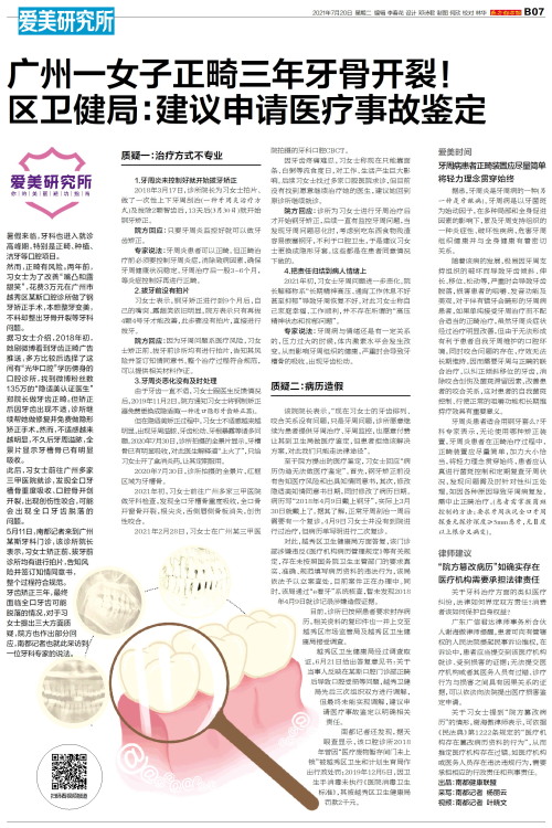 广州一女子正畸三年牙骨开裂!区卫健局:建议申请医疗事故鉴定