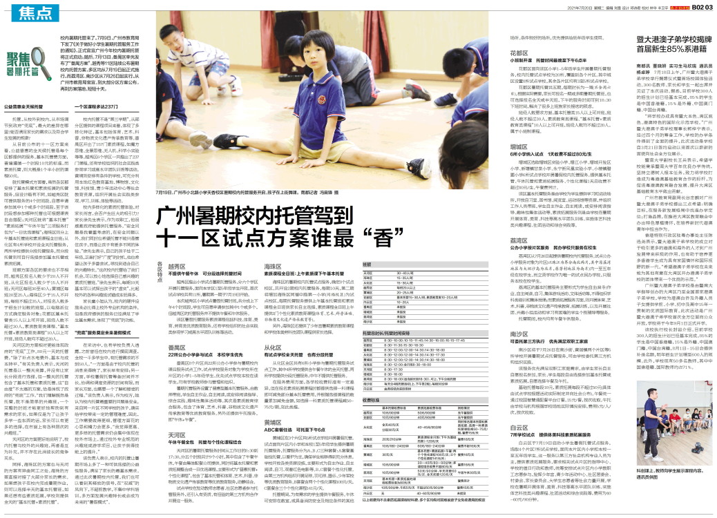 广州暑期校内托管驾到 十一区试点方案谁最“香”