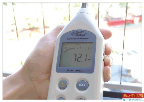 记者走访小区时正值工作日上午,开源大道上车辆通行密集,各工地也在繁忙施工。有业主拿出分贝测试仪,带领记者在多户靠近开源大道的业主家阳台上观察,仪器均显示噪声数值超过65分贝,甚至一度达到72分贝以上。不少业主为屏蔽噪声加装了多层隔音玻璃。