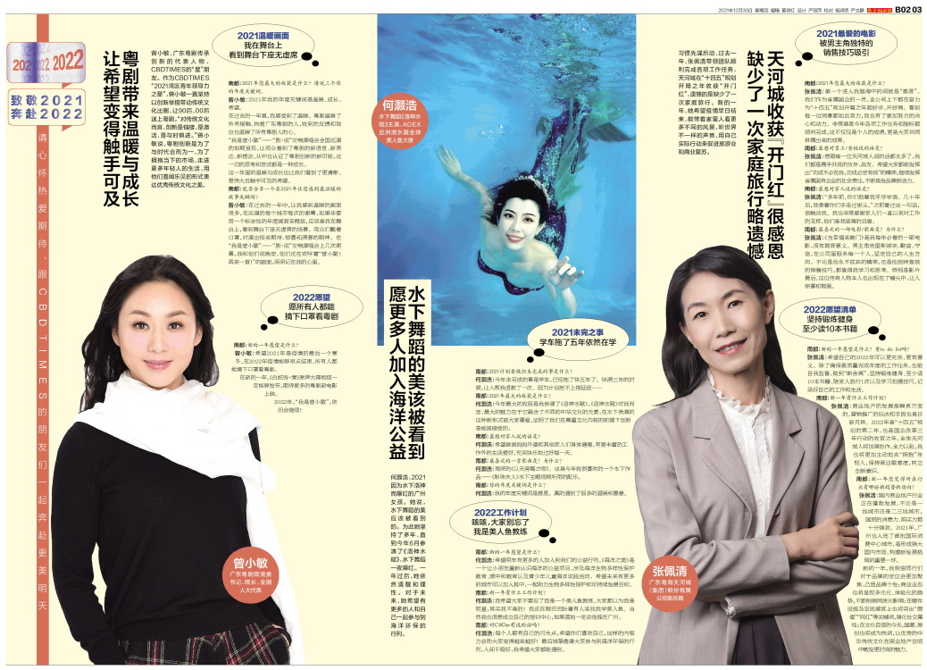 张佩清 广东粤海天河城(集团)股份有限公司副总裁 习惯先谋后动,过去一年,张佩清带领团队顺利完成各项工作任务,天河城在“十四五”规划开局之年收获“开门红”,遗憾的是缺少了一次家庭旅行。新的一年