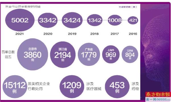 截至2021年12月31日,各级监管部门共开出15112张行政处罚单。本文从时间轴、地域图、处罚原因、处罚措施等多角度进行梳理分析,透视医美执法焦点。