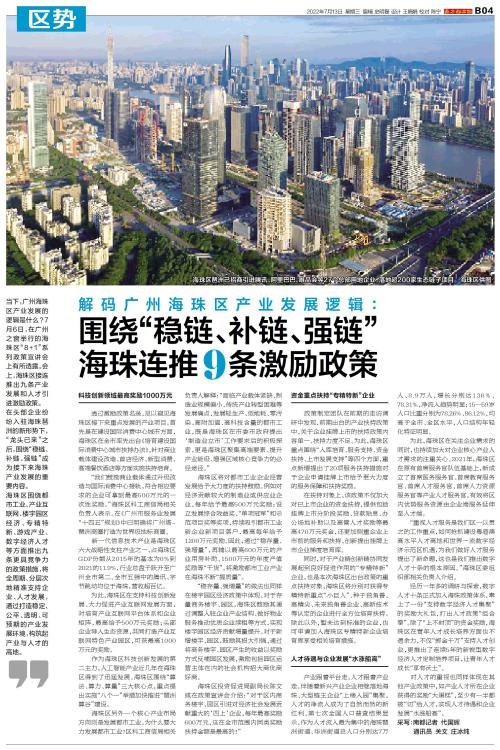 在头部企业纷纷入驻海珠琶洲的新形势下,“龙头已来”之后,围绕“稳链、补链、强链”成为接下来海珠产业发展的重要内容。
