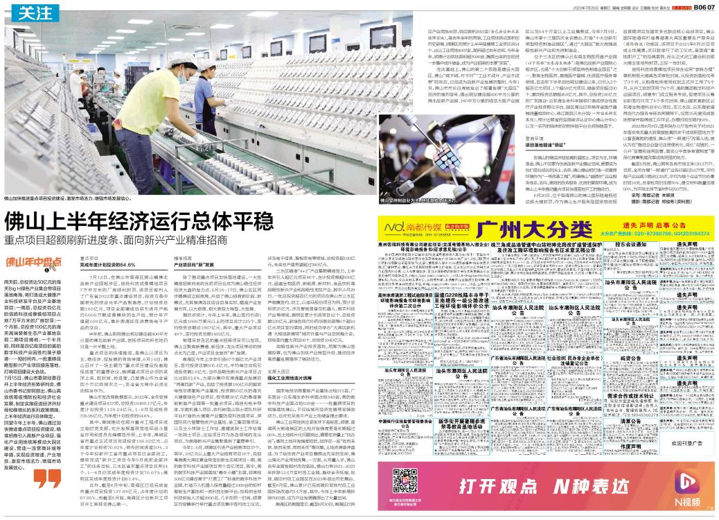 佛山上半年经济运行总体平稳