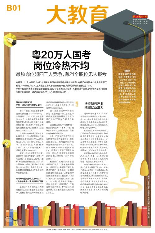 南都讯 11月10日起,2023年国家公务员考试开始报名确认和缴费。南都记者从国家公务员局官网了解到,今年共有259.77万人通过了用人单位的资格审查,与录用计划数之比约为70∶1。 广东不仅是