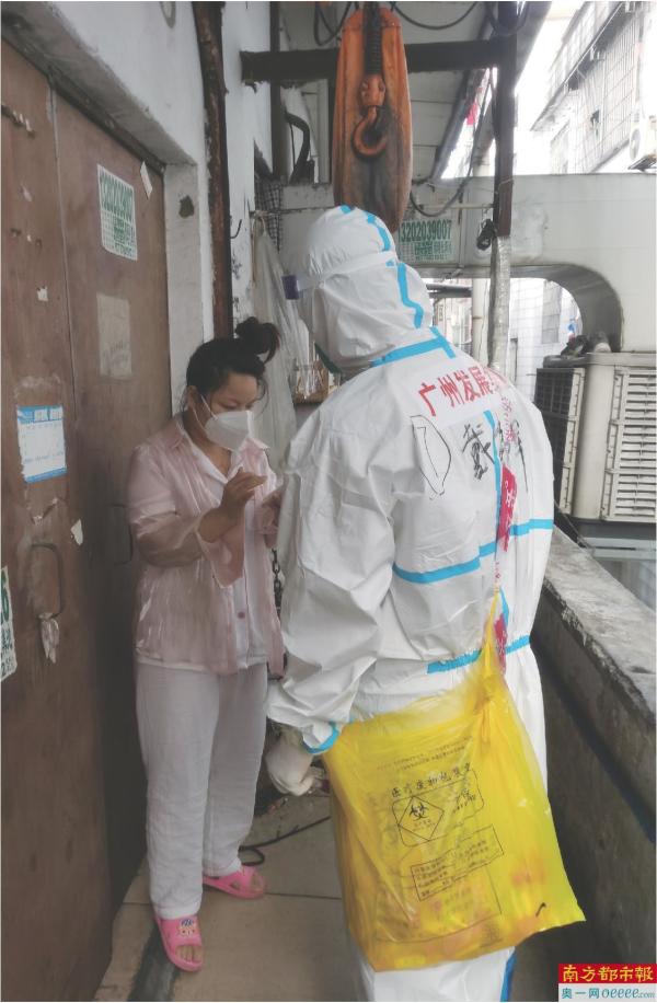 在临时管控区海珠区凤阳街大大小小的巷子中,活跃着一群“大白”。测核酸、送物资、护送人员转移……从白天到黑夜,哪里有需要,哪里就有他们的身影。广州发展集团第四批党员突击队志愿者戴伟军就是其中之一。每天穿着防护服爬十几栋楼,已经成为戴伟军的日常。