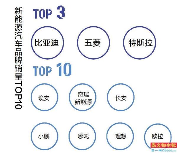 南都湾财社记者发现,从此次发布的“新能源车品牌销量TOP50”可以看到,头部三强的地位无可撼动。除了比亚迪成为唯一的百万级车企,早已一骑绝尘。上汽通用五菱和特斯拉,均达到了40万以上体量。
