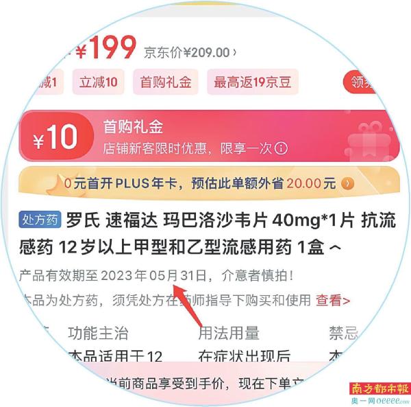 4月11日,南都记者收到报料称,在购买流感药物时,发现速福达的线上销售价格存在较大差异,仔细一看才发现在有效期方面存在“猫腻”。经梳理,在多个电商平台上,20mg×2片以及40mg×1片规格的速福达价格幅度处于200元至370元区间。对于已临近有效期的药物,部分商家并未明确标注提醒公众。